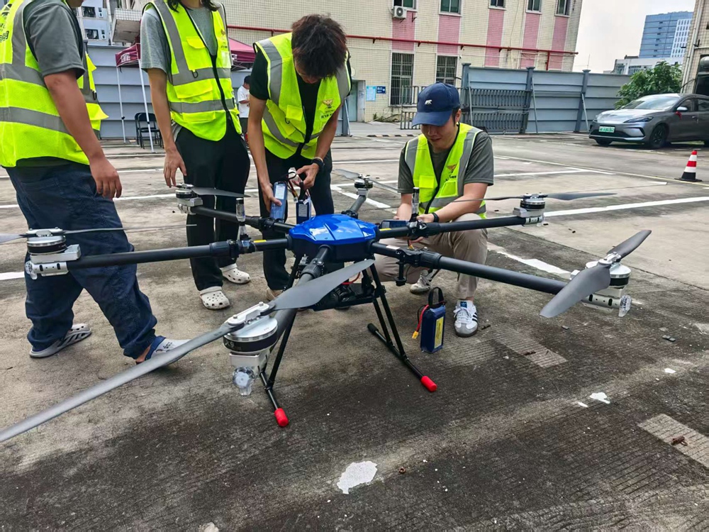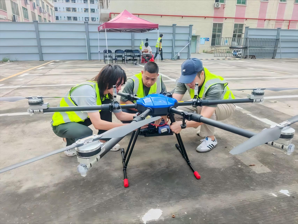 在培训过程中,教员对无人机设备进行调试和维护,确保学员在培训中能够正常使用无人机。
